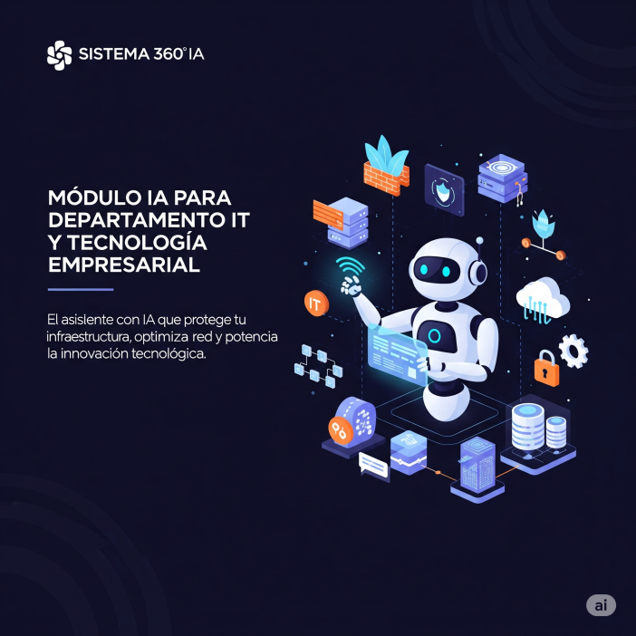 El módulo IA para IT no está aislado. Se integra perfectamente con los demás componentes del Sistema 360 IA, creando una infraestructura tecnológica conectada que garantiza fluidez entre procesos y departamentos.